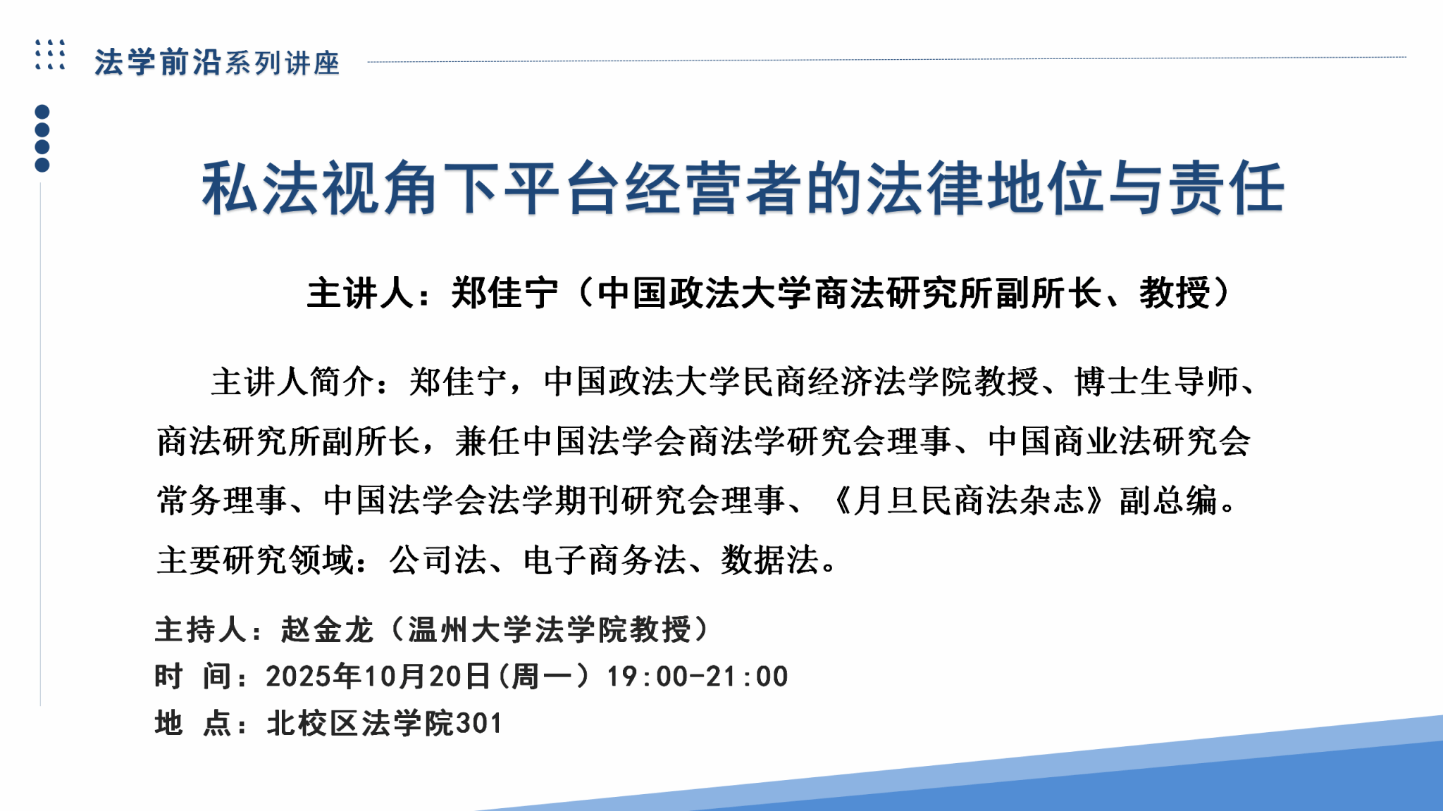 讲座预告|法学前沿讲座第三期第4讲:私法视角下平台经营者的法律地位与责任