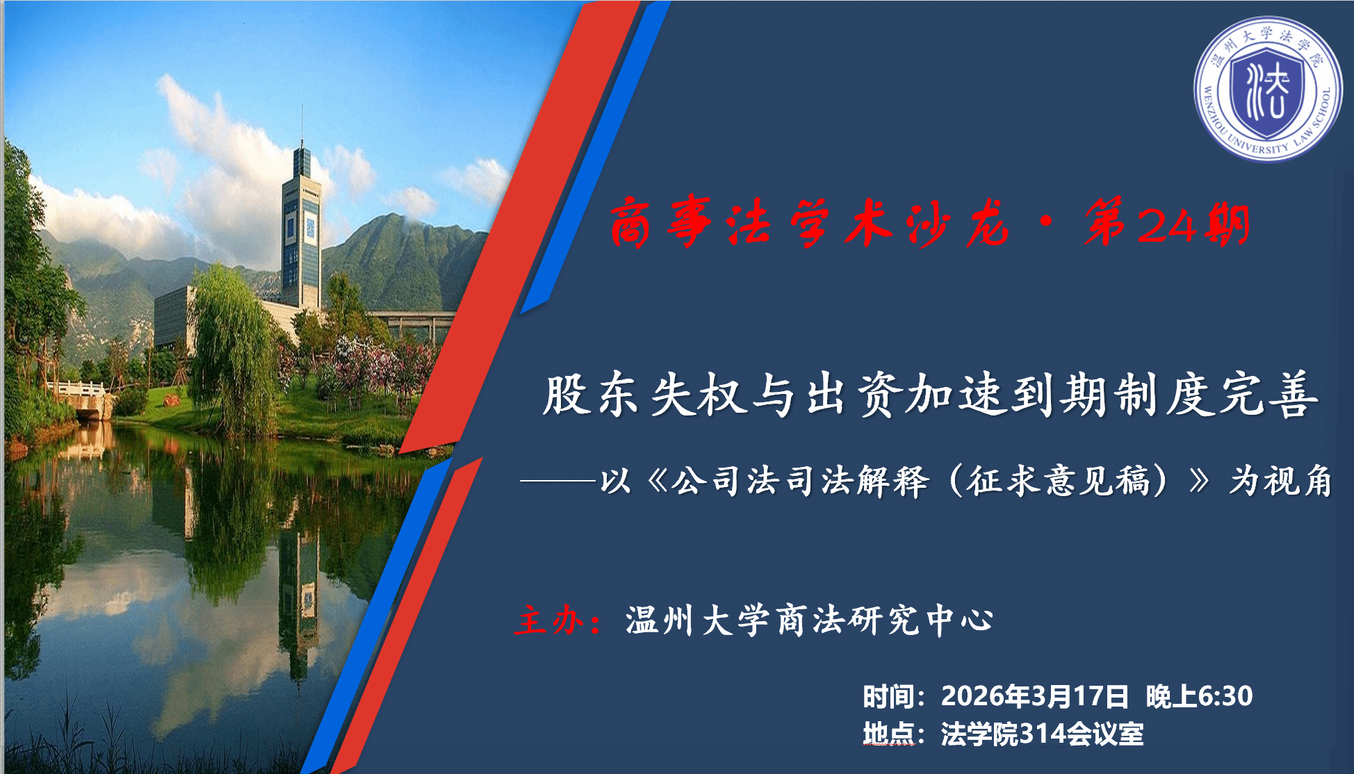 讲座预告|商事法学术沙龙·第24期:股东失权与出资加速到期制度完善