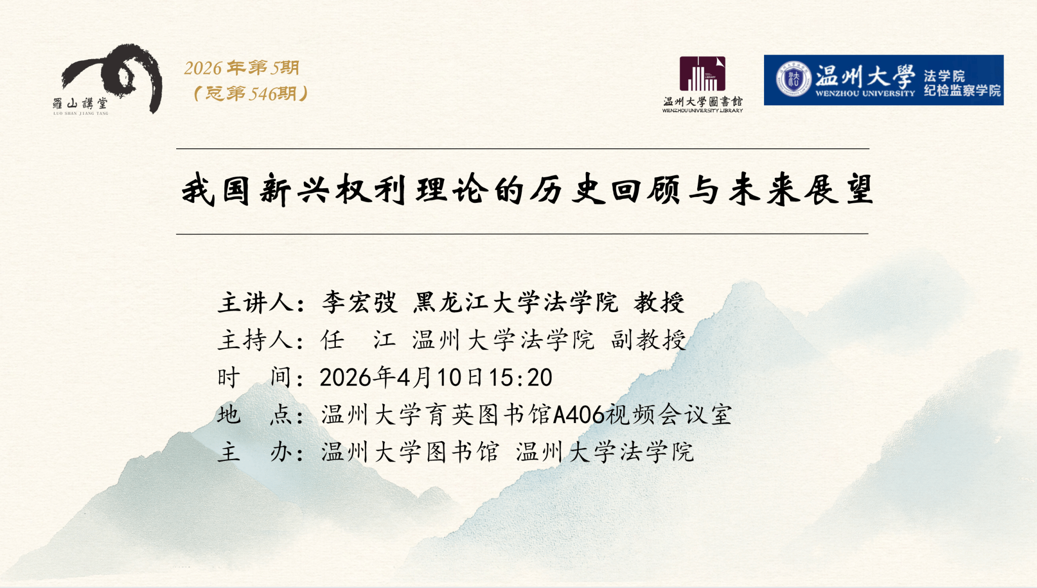 罗山讲堂预告|李宏弢:我国新兴权利理论的历史回顾与未来展望