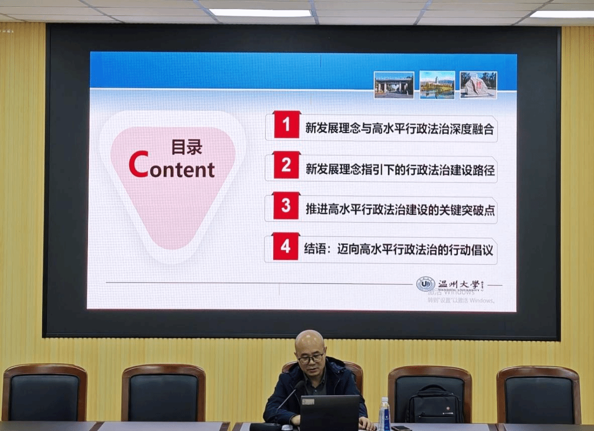 在论述法治政府建设时,肖磊教授从《法治政府建设实施纲要(2021—2025年)》出发,对法治政府的目标定位与制度内涵进行了阐释,认为法治政府应当是职能科学、权责法定、执法严明、公开公正、智能高效、廉洁诚信的政府。这一理念既体现了依法行政的制度要求,也为法治浙江与法治温州建设提供了根本遵循。