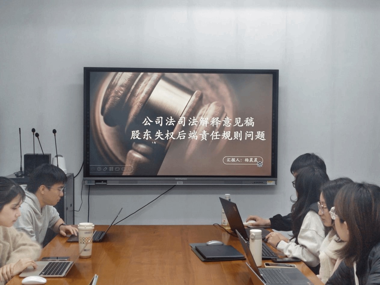 2025级研究生王以勒同学以“失权制度和董事催缴”为主题,并主要对意见稿第26条和第27条进行解读。他着重分析了第26条有关股东失权责任与股权处理的问题,指出第26条的进步点在于保障了债权人的权利实现,同时提出减资程序中未赋予债权人对失权股权处置的异议权。同时,他分析了董事催缴出资流程,认为意见稿第27条能有效限制和督促董事会规范行使权利,并提出《公司法》中董事催缴出资中存在核查时限模糊和对股东操控董事会情形制约不足的问题。