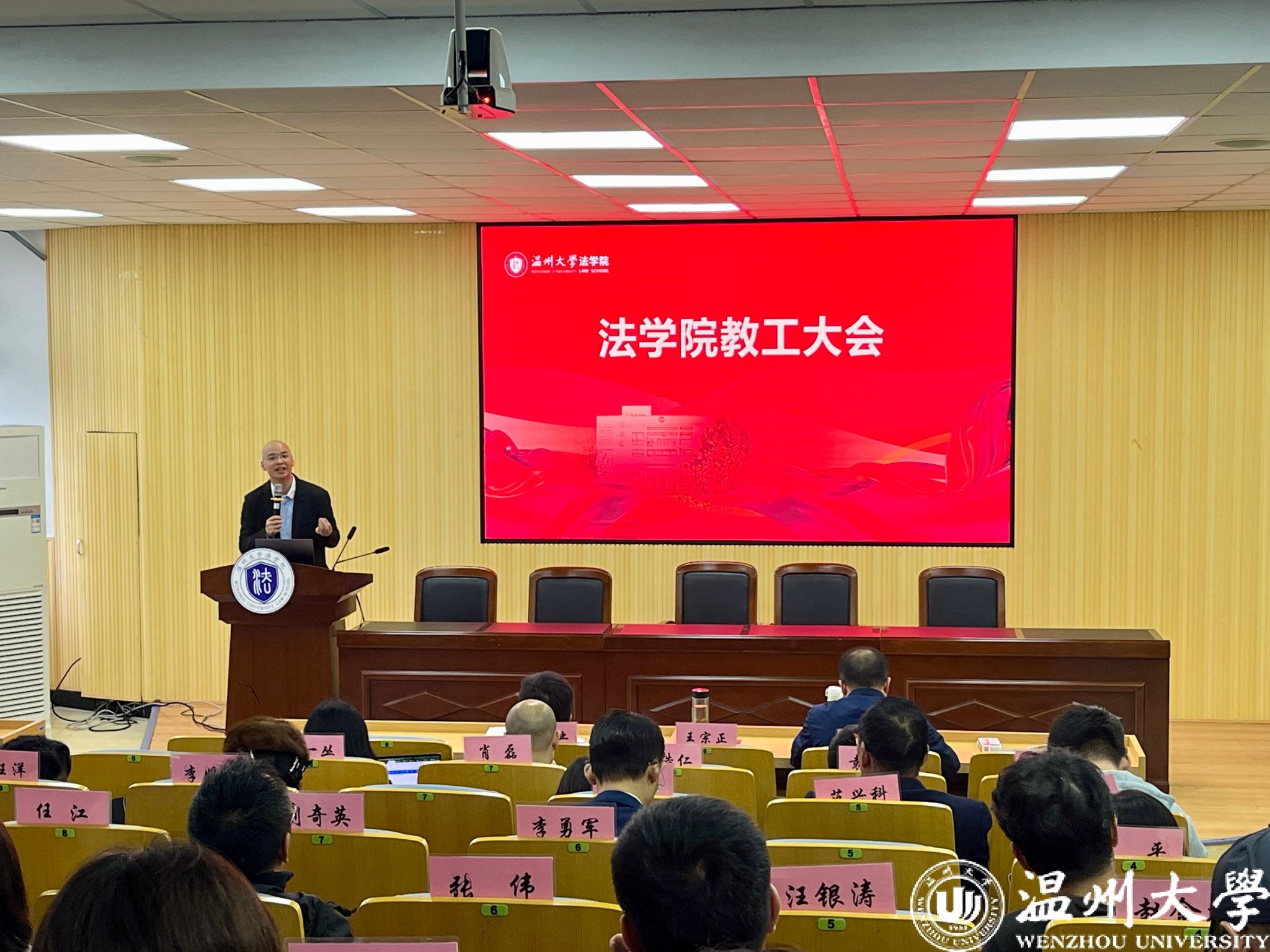 11月12日下午,法学院在北校区2号楼301会议室召开教工大会暨党的二十届四中全会精神传达学习会。会议由学院党委书记周敬业主持,法学院全体教职工参加。
