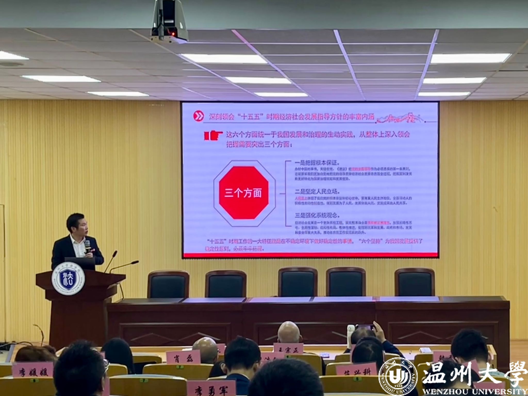 会上,学院也开展全体教工认真学习党的二十届四中全会精神学习。周敬业围绕党的二十届四中全会通过的《中共中央关于制定国民经济和社会发展第十五个五年规划的建议》作专题辅导。他从“十五五”时期我国发展所处的历史方位、经济社会发展指导方针的丰富内涵、全面贯彻指导方针的实践要求三个维度,系统解读了全会精神。