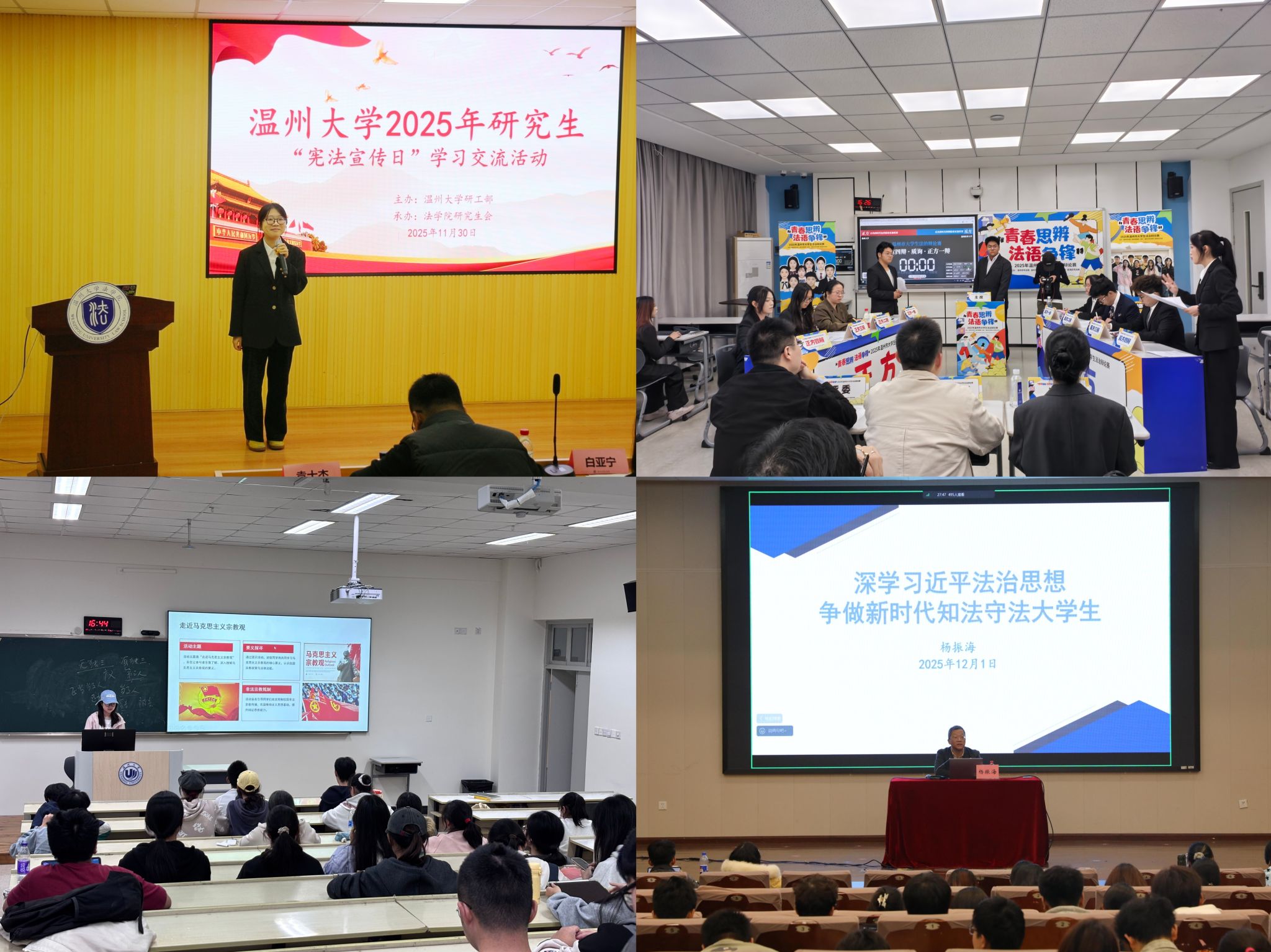 为进一步学习宣传贯彻习近平法治思想,大力弘扬宪法精神,维护宪法权威,引导青年学生牢固树立宪法至上意识,在第十二个国家宪法日来临之际,温州大学组织开展2025年宪法宣传周系列活动,以“学习宣传贯彻习近平法治思想,推动宪法深入人心”为主题,探索“特色活动+常态化宣传”的普法新模式,以精彩纷呈、充满趣味的形式为广大师生带来了一堂堂“有声有色”的法治课。