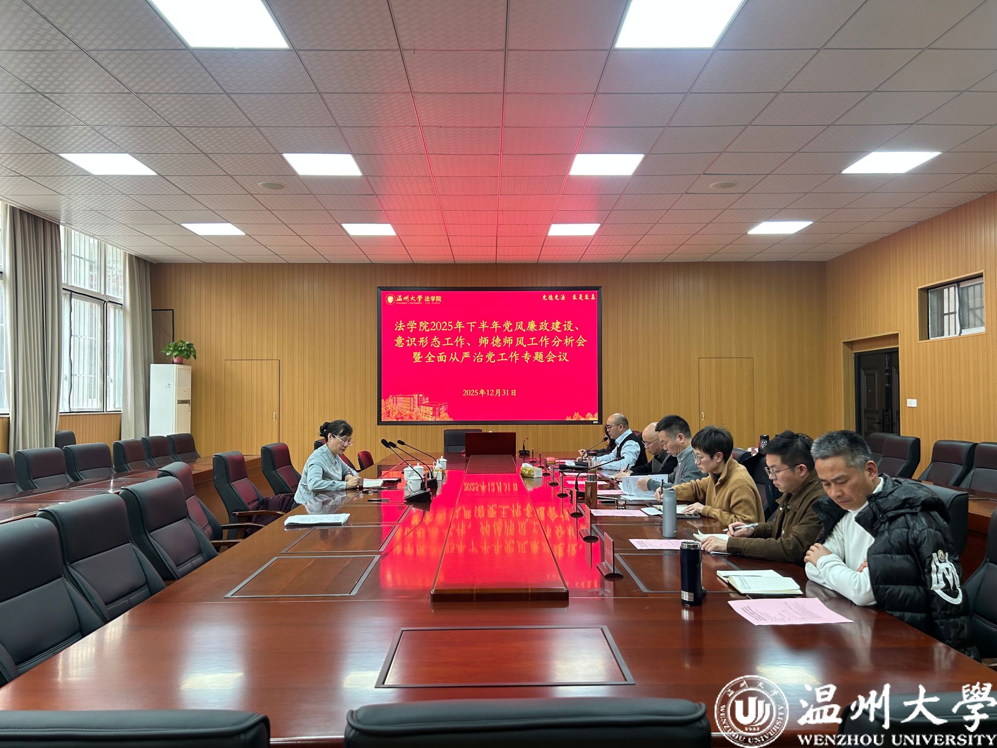 12月31日下午,法学院召开2025年下半年党风廉政建设、意识形态工作、师德师风工作分析会暨全面从严治党工作专题会议。校党委副书记赵降英到会指导,学院党委书记周敬业主持会议。