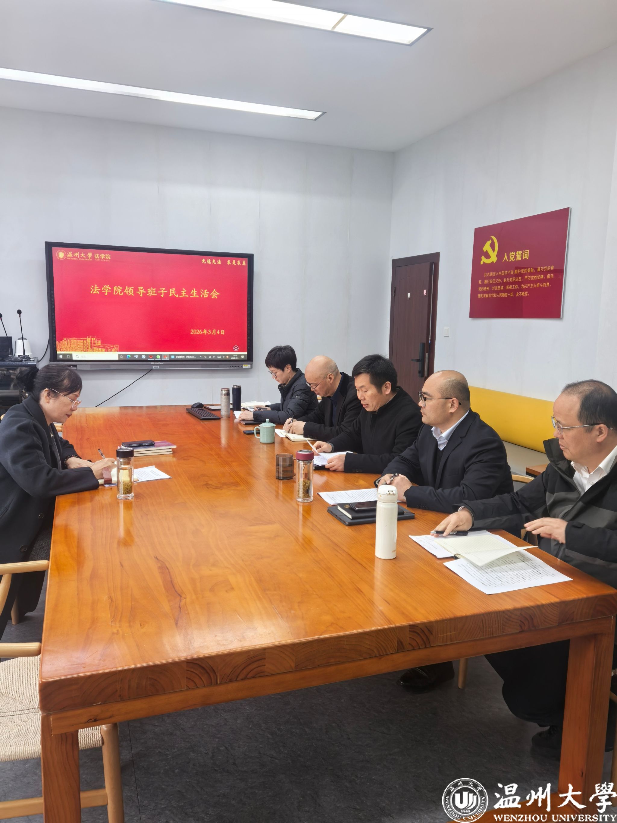 按照校党委部署要求,3 月4 日,法学院召开2025年度领导班子民主生活会,会议以习近平新时代中国特色社会主义思想为指导,紧扣对照“五个带头”作检视的主题,紧密联系思想、学习和工作实际,对照贯彻落实中央八项规定精神及征集意见,全面查摆问题,深入进行自我检视和党性分析,认真开展批评与自我批评,研究提出整改措施。校党委副书记赵降英同志莅临现场并作指导,学院领导班子全体成员参加了会议。学院党委书记周敬业主持会议。
