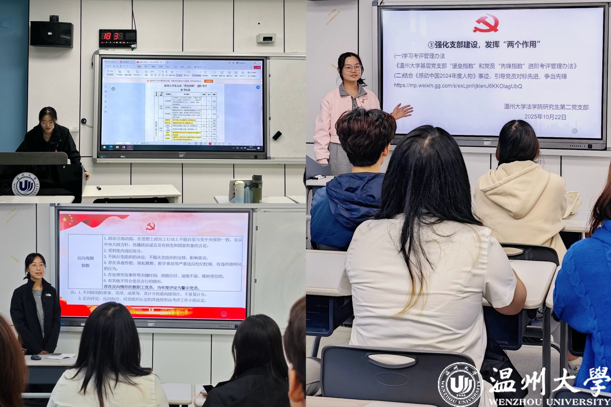 近日,为深入贯彻落实新时代党的建设总要求和新时代党的组织路线,进一步提升党支部组织力,强化政治功能,激发党员队伍生机活力,在温州大学法学院党委统一部署下,各党支部积极组织开展了《党支部“堡垒指数”和党员“先锋指数”进阶考评管理办法》(以下简称《办法》)的专题学习活动。