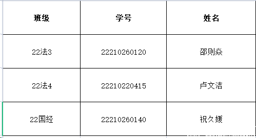 现就法学院2024-2025学年本科生国家奖学金评选结果进行公示: