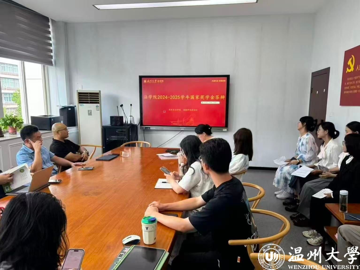 为落实国家奖学金评审工作,激励莘莘学子追求卓越、奋发成才,10月10日下午,法学院开展了2025年国家奖学金评选答辩会。本次答辩会议有幸邀请到学工办的付玉霞老师作为主持人,并邀请了学生工作委员会的成员作为评委参与本次活动。