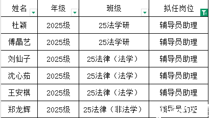经个人报名、资格审查、综合评议,学院研究确定,拟聘任以下6名同学为2025-2026学年第二学期研究生辅导员助理,现予以公示: