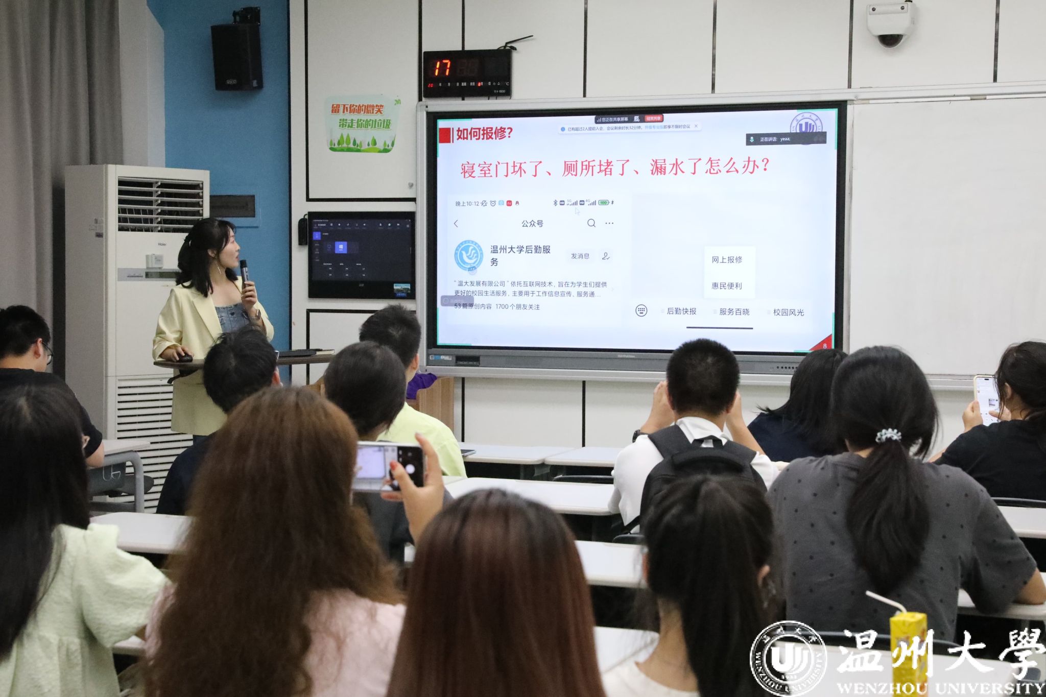 会议上,邱老师一方面强调了寝室长的工作职责,以及如何发挥寝室长在寝室的核心作用。另一方面对寝室管理重点内容,如消防安全、寝室心理健康、防范电信诈骗和意识形态安全等方面展开细致的举例说明和讲解。