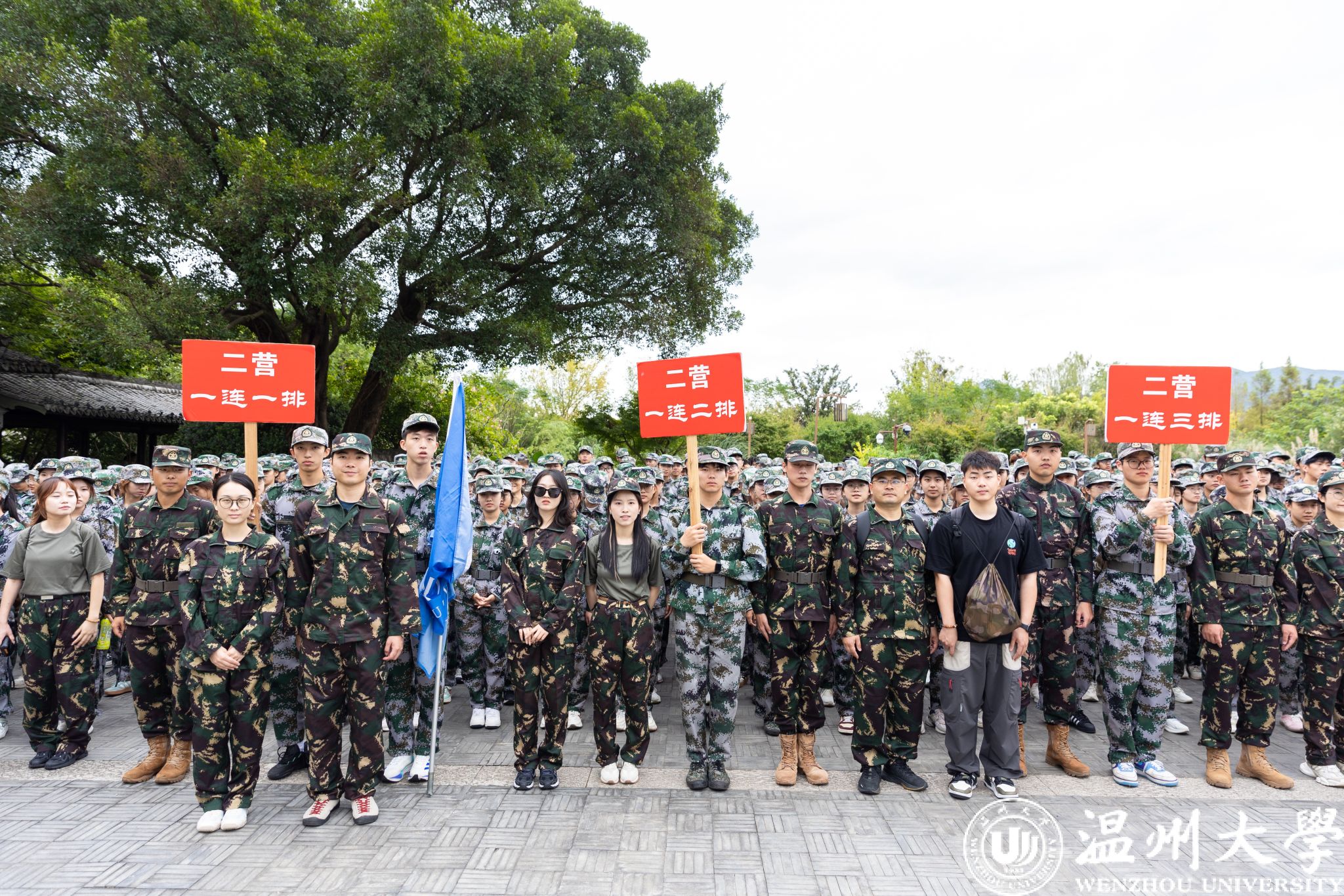队伍沿景观大道行进,迷彩队伍如洪流涌动在环山翠色间。温州大学退役大学生教官团骨干挥舞旗帜、领唱军歌,“听吧新征程号角吹响,强军目标召唤在前方!”嘹亮歌声穿林越岭,点燃全体队员的热血豪情。全体参训学子激情澎湃,在歌声中凝聚信念,于行进中锤炼品格,传承长征精神,续写红色荣光。