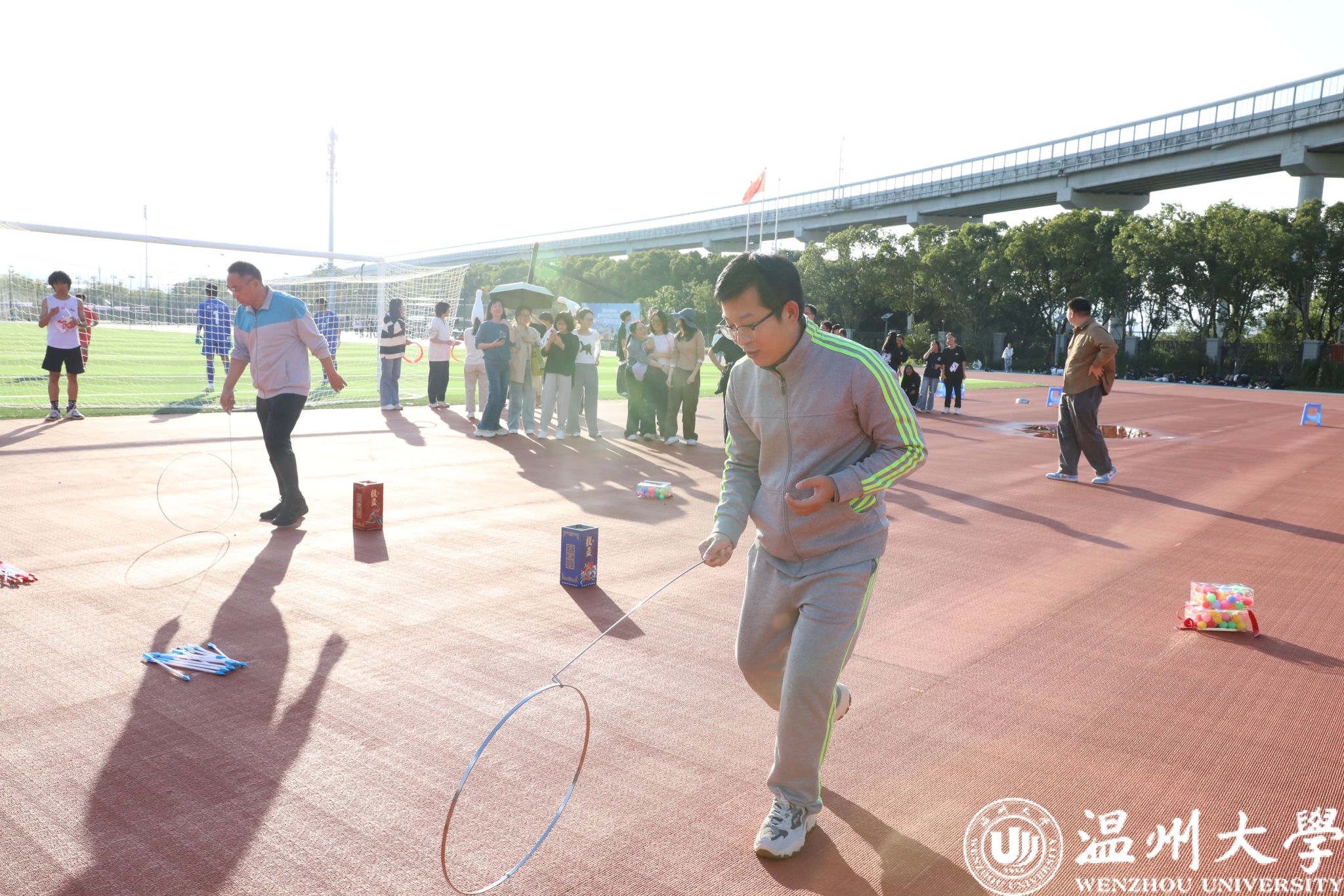 在蒙眼敲锣、投壶、赶鸡入笼、接力滚铁环、套大鹅、集体拔河等趣味项目中,法学院师生打破了竞技的紧张感,以“怀旧+互动”为核心,让赛场变成师生同乐、班级同心的“温情阵地”。