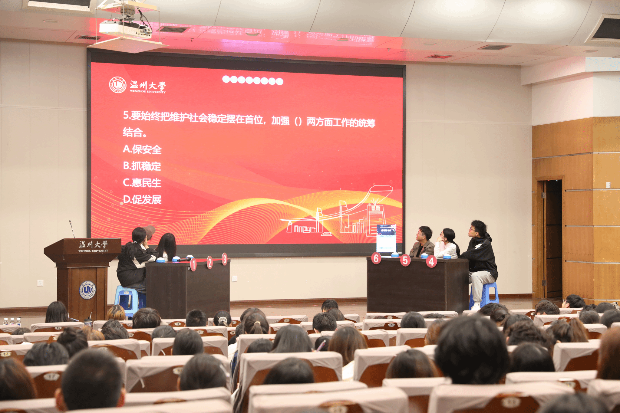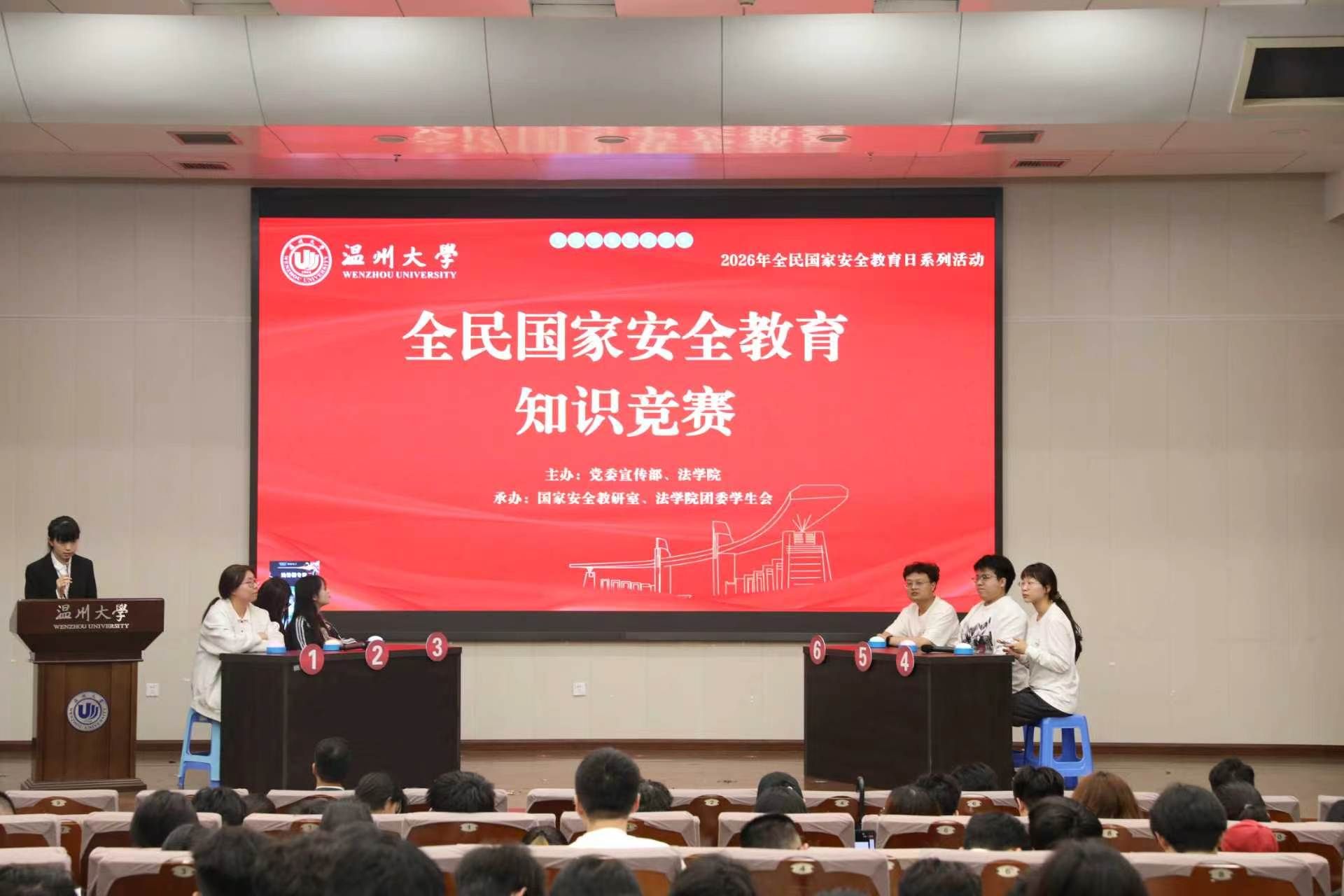 为营造“国家安全、人人有责”的浓厚氛围,温州大学举办2026年全民国家安全教育知识竞赛。活动自预热宣传阶段起便备受关注,吸引全校各学院学子踊跃报名。经过初赛交锋,12名优秀选手脱颖而出,站上决赛舞台。