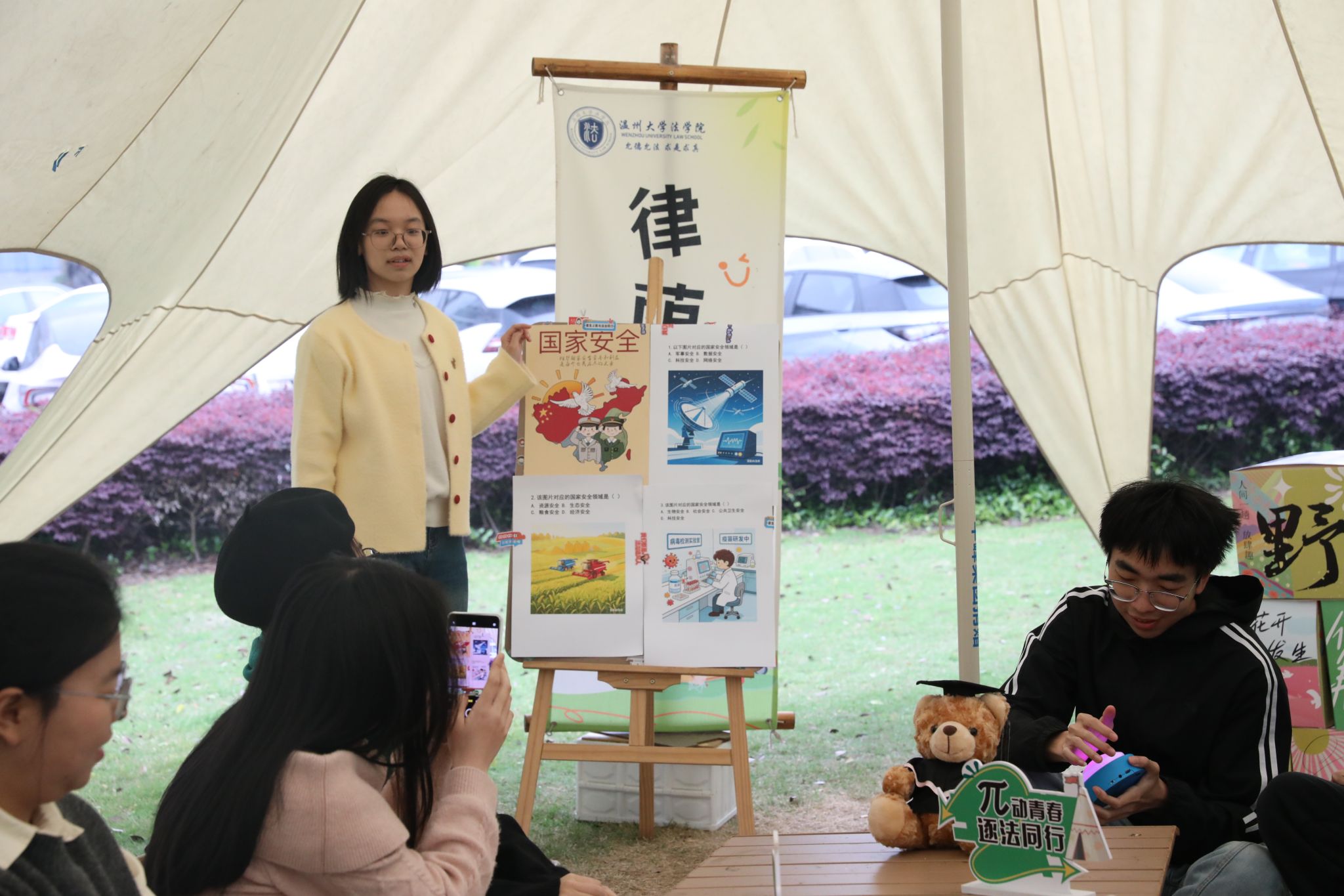 4月11日下午,法学院24法学1班、2班团支部以“青春π场・律荫小筑”育人品牌为依托,开展“国家安全 青春挺膺”特色主题团日活动,用青年化、互动式、专业化的方式,让国家安全教育“活”起来。